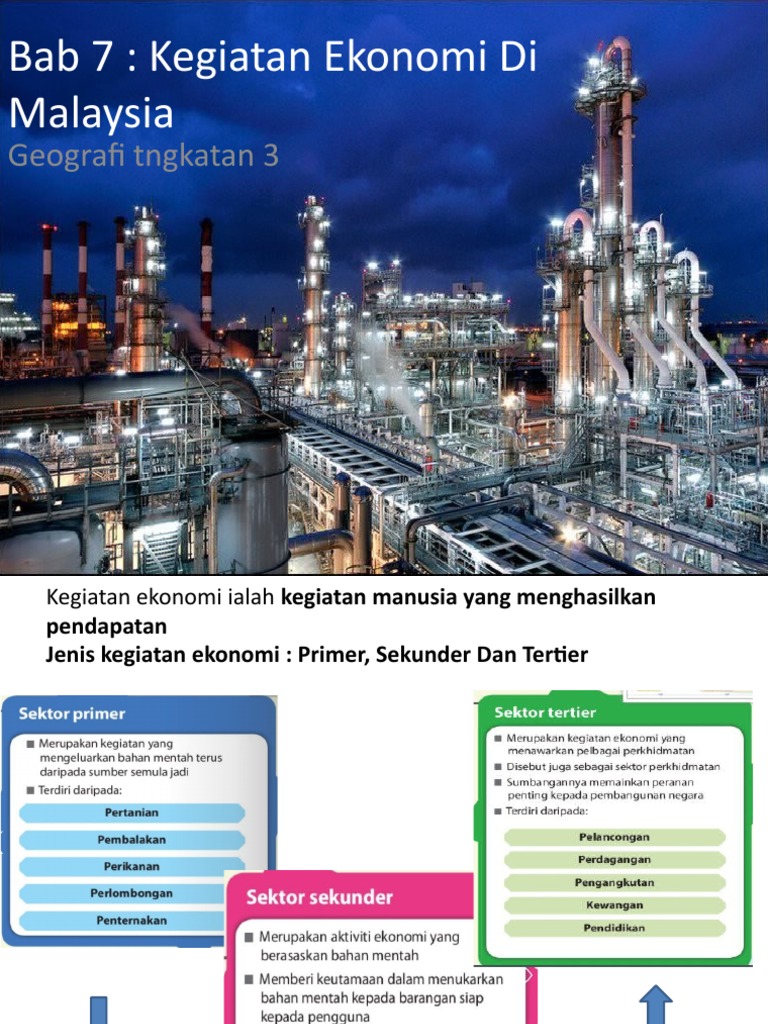 Yong Guat Baby menerbitkan GEOGRAFI TINGKATAN 3 BAB 7 KEGIATAN EKONOMI DI MALAYSIA pada 2020-05-13. Jenis kegiatan ekonomi. Kegiatan ekonomi di malaysia PENILAIAN BERTERUSAN DI DALAM BILIK DARJAH ID.